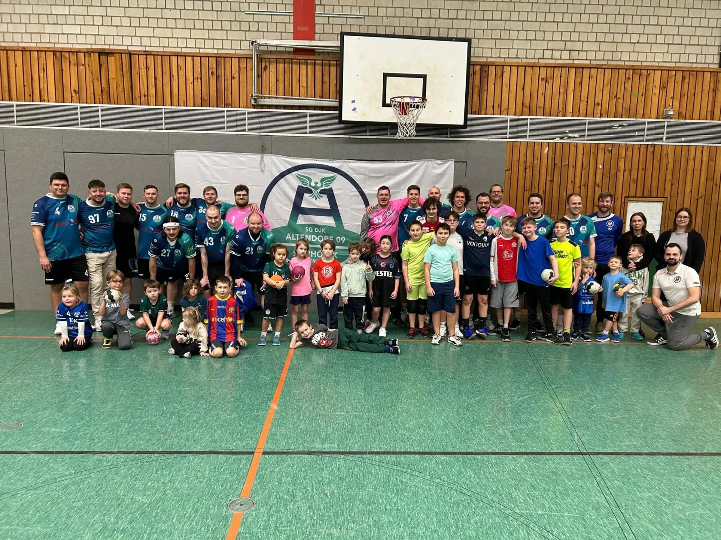 Die älteren Kinder machen mit einfachen Teamspielen und erstem Umgang mit dem Ball, die Sporthalle unsicher. Auch hier können die Eltern gerne auf der Tribüne dabei sein und zuschauen, ist allerdings nicht mehr zwingend. Mittlerweile wurden die ersten Mini-Turniere absolviert und die Motivation und der Spaß an unserem Sport wächst bei Kindern und Eltern. Wir wollen mit unseren Angeboten vor allem den Spaß an der Bewegung vermitteln und den Mannschaftssinn fördern. Vielleicht wird ja bei dem ein oder anderen Kind (oder auch Elternteil) das Interesse am Handball geweckt. Habt ihr Lust auf Bewegung im Team und mit dem Ball ? Dann kommt gerne vorbei und schaut euch eine Einheit von uns an. Natürlich könnt ihr auch gerne direkt mitmachen. Wir freuen uns auf dich !